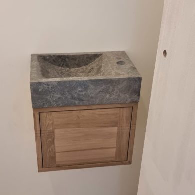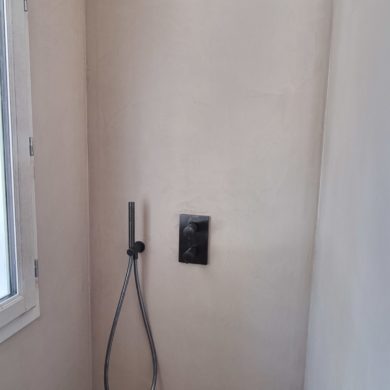 La partie sanitaire a été entièrement repensée avec l’aménagement de trois salles de bain, équipées de robinetterie haut de gamme de la marque Cristina Ondyna. Ce choix garantit à la fois design, durabilité et confort d’utilisation au quotidien. Chaque espace a été conçu pour répondre aux besoins des occupants, avec des finitions sobres et élégantes.
